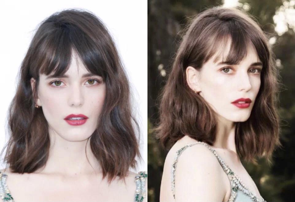刘海为八字刘海,遮盖了长脸部分瘦削的脸部线条,也可以随意留少许头发在额头中间,给人一种随性自然的慵懒风。