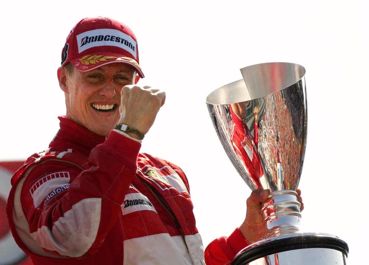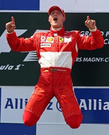舒马赫1969年1月3日出生于德国许尔特,是德国一级方程式赛车车手,现代最伟大的F1车手之一,在他头16年的职业生涯中,几乎刷新了每一项纪录。总共赢得7次总冠军,亦曾是唯一赢得总冠军的德国车手。舒马赫在获胜时有个招牌动作,总是会双手举高指向天空,如今他的粉丝们再也不能看到他的这个手势了。