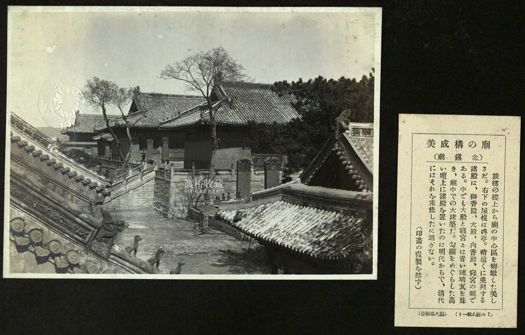 1942年时,从北镇庙鼓楼上向北拍摄,图中能看到碑亭、御香殿、大殿、内香殿、寝宫