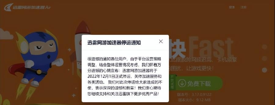 Tech星球11月27日消息,迅雷网游加速器官网发布停运通知,称将于2022年12月1日正式停运,关停加速服务和各类活动。
