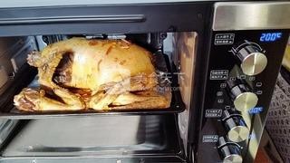 5. 烤箱上下火200度预热,本想用烤架转动烤,结果没放进去,只好放在烤盘上,烘烤约120分钟,没20分钟翻动一次,最后20分钟刷上蜂蜜,烘烤上色。