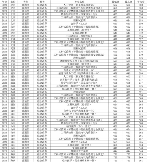 七、西安交通大学2023年中外合作、预科、提前批在各省各专业录取分数线