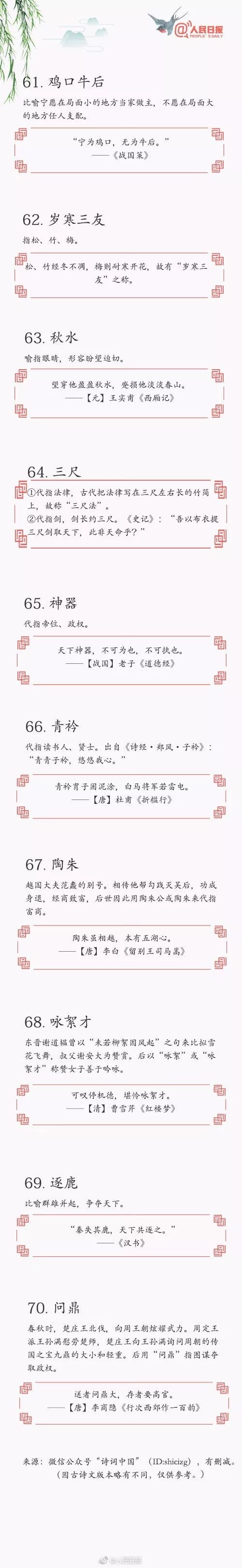 ◆ 70个诗词中常见的文化典故↓↓感受古人笔下的用典之美