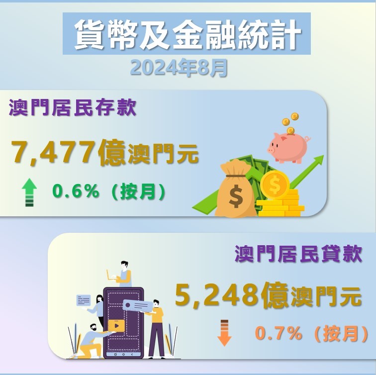 根据澳门金融管理局2024年8月公布的数据显示,澳门存款总额为7477亿澳门元,按照1澳元=0.91人民币(2024年12月3日实时汇率)折算为6804.07亿RMB。