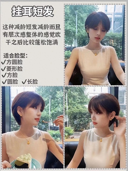 挂耳短发显得非常清爽、利落、洗头发、打理也都非常方便。尤其脱发严重、发量不多的女性朋友,短发的蓬松效果更佳。