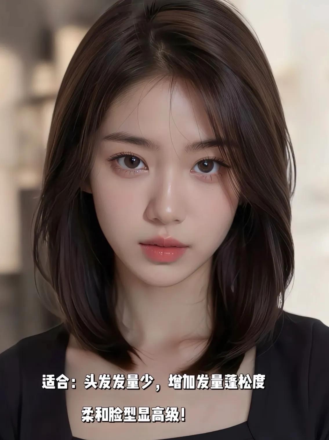 这类发型长度大概在下巴到肩膀上一点,可以不用烫发!即可以挂在耳朵后面,又可以自然散落,还可以半扎头发,可变形强,修饰脸型效果明显!