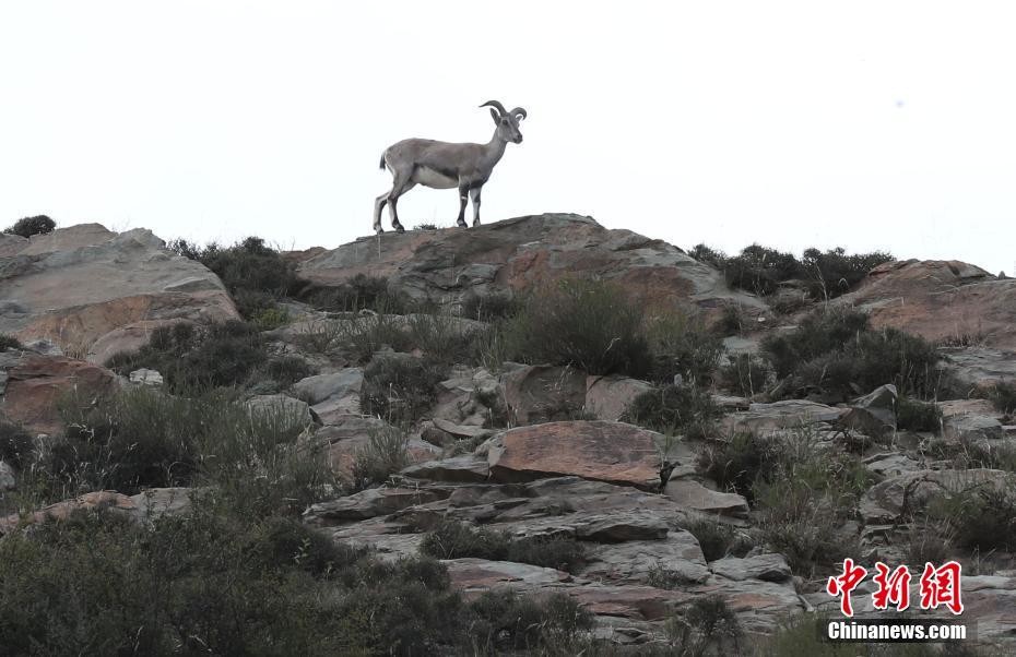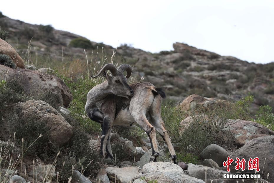 8月22日,岩羊在宁夏贺兰山国家级自然保护区内活动。贺兰山岩壁上跳跃的“精灵”岩羊是国家二级保护动物、濒危野生物种。该保护区是全球岩羊分布密度最大的地区之一,经过多年的环境整治与生态恢复,目前贺兰山岩羊总量达到四万只以上。中新社记者 于晶 摄
