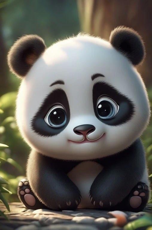 熊猫的样子十分呆萌,大大的黑眼圈像是戴着一副时尚的墨镜,让它们看起来更加俏皮可爱。它们的耳朵毛茸茸的,小巧玲珑,仿佛在倾听着这个世界的美好。
