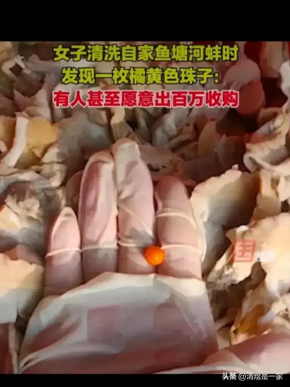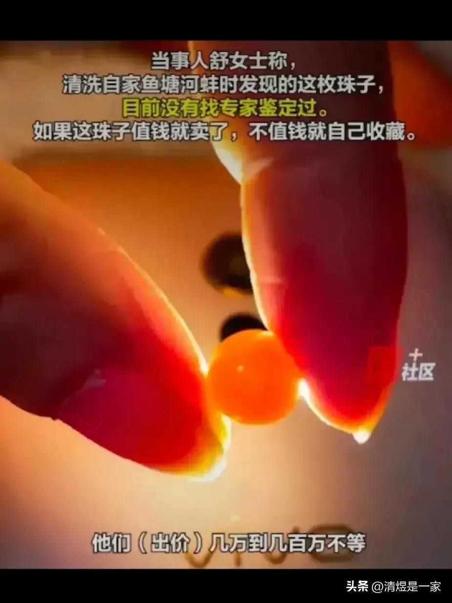 这枚橘黄色珠子,色泽独特,晶莹闪耀,让人一见难忘。据网友猜测,这可能是美乐珠,也被称为“天然珍珠之王”,价格不菲。这枚珠子的发现,让那位女子有了可能获得一笔财富的机会。然而,更重要的是,这个故事告诉我们,生活中处处有惊喜,只要我们用心去发现和珍惜。