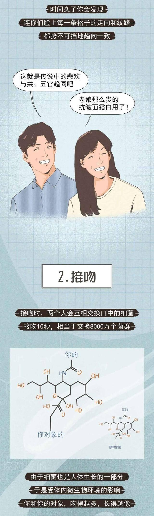 其实在生活中我们经常会听到这一句话,很多夫妻原本并不像,但是在一起生活久了会变得越来越像,两个人总是说不出有哪个神是对方的地方。