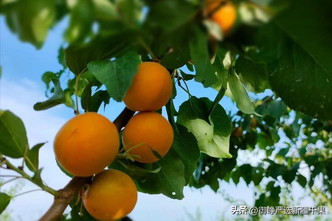 这是新鲜挂枝头的吊干杏,不过新鲜的杏子听农场主说比较短缺,主要是果子成熟快,成熟后的鲜杏也不好保存,加上新疆到内地也是比较远的路途的,所以内地市场上也很少会有此类鲜杏子;大家也就难以品尝到新鲜的吊干杏了。