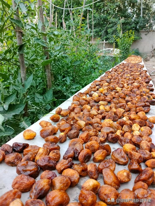 杏子成熟的比较密集的时候,农场主会把果子都采摘下来一颗颗的摆好,夏天太阳大,晒上个三天就有杏干的雏形了。一般晒上个一周就很干爽了。