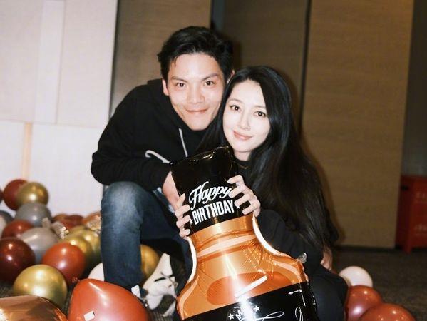 向佐郭碧婷1月庆生会夫妻合照,爱妻上衣宽松被指肚子明显隆起。(图/翻摄自微博/向佐)