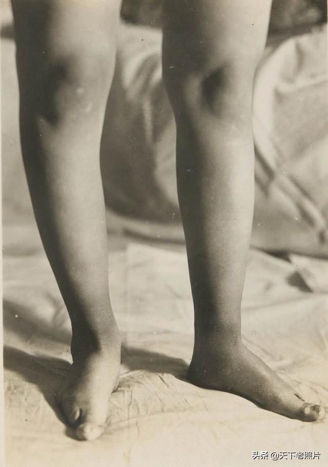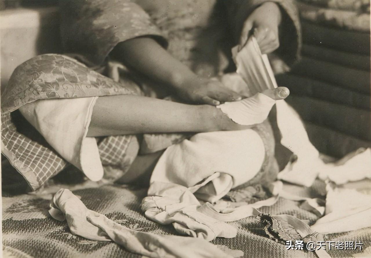 在这组照片中,给我们展示了30年代的小脚女子的脚变形了何等模样,以及她们是平时如何打理自己的脚,和穿什么样的袜子和鞋子。
