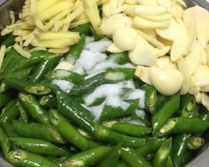 12、烧开放凉后,倒入辣椒段中,操作,腌制3天左右即可食用。