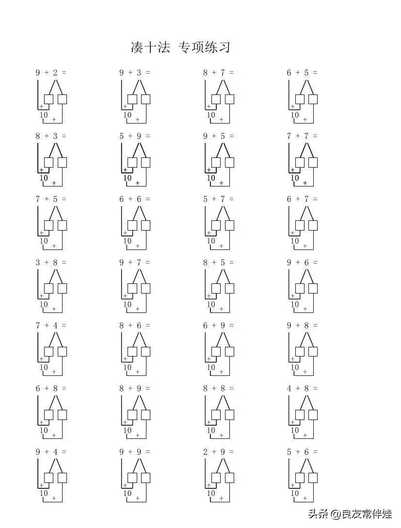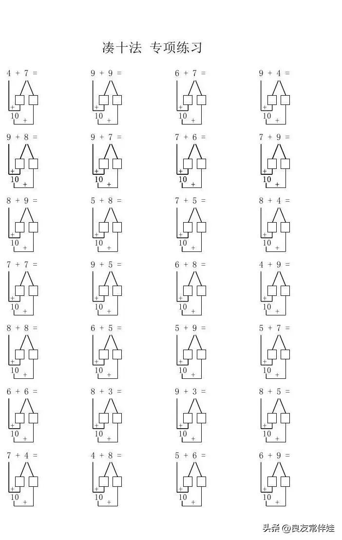 一年级数学上册用「凑十法破十法」快速计算20以内加减法专项练习 2026-03-26 10:03 点击: 来源:迪趣网 摘要:一年级数学上册用「凑十法破十法」快速计算20以内加减法专项练习 凑十法 核心口诀:看大数,分小数。凑成10,加剩数。 破十法 核心口诀:看大数,分出10,一减一加算得数。 平十 一年级数学上册用「凑十法破十法」快速计算20以内加减法专项练习凑十法核心口诀:看大数,分小数。凑成10,加剩数。破十法核心口诀:看大数,分出10,一减一加算得数。平十法核心口诀:分小数,连续相减算得数。 相关标签: 上一篇:推荐18部超级搞笑的喜剧片,保证让你开心到飞起 下一篇:安全生产月,漫画说安全