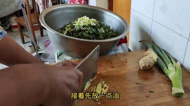 ·然后把浸泡好的马蜂菜切碎,再加入葱、姜。