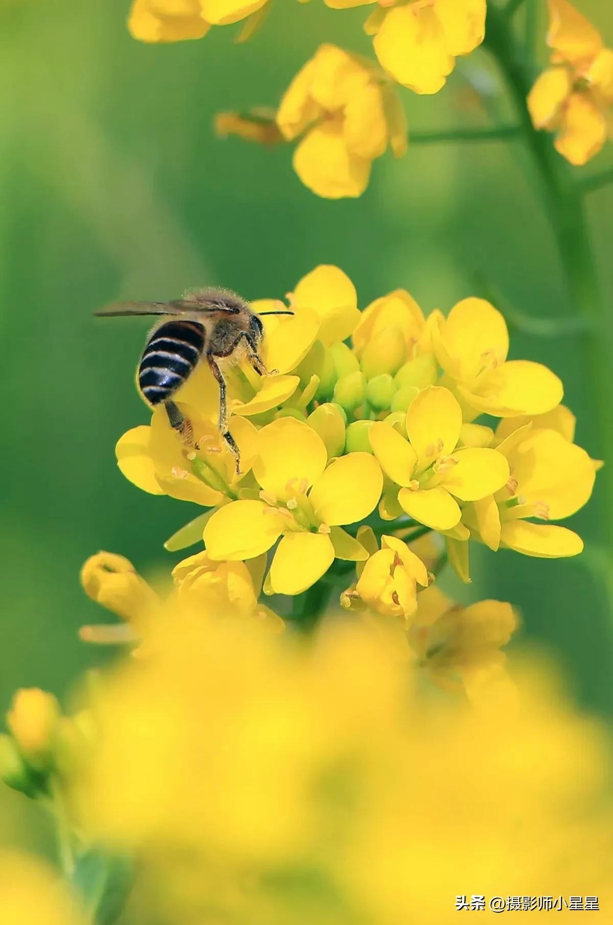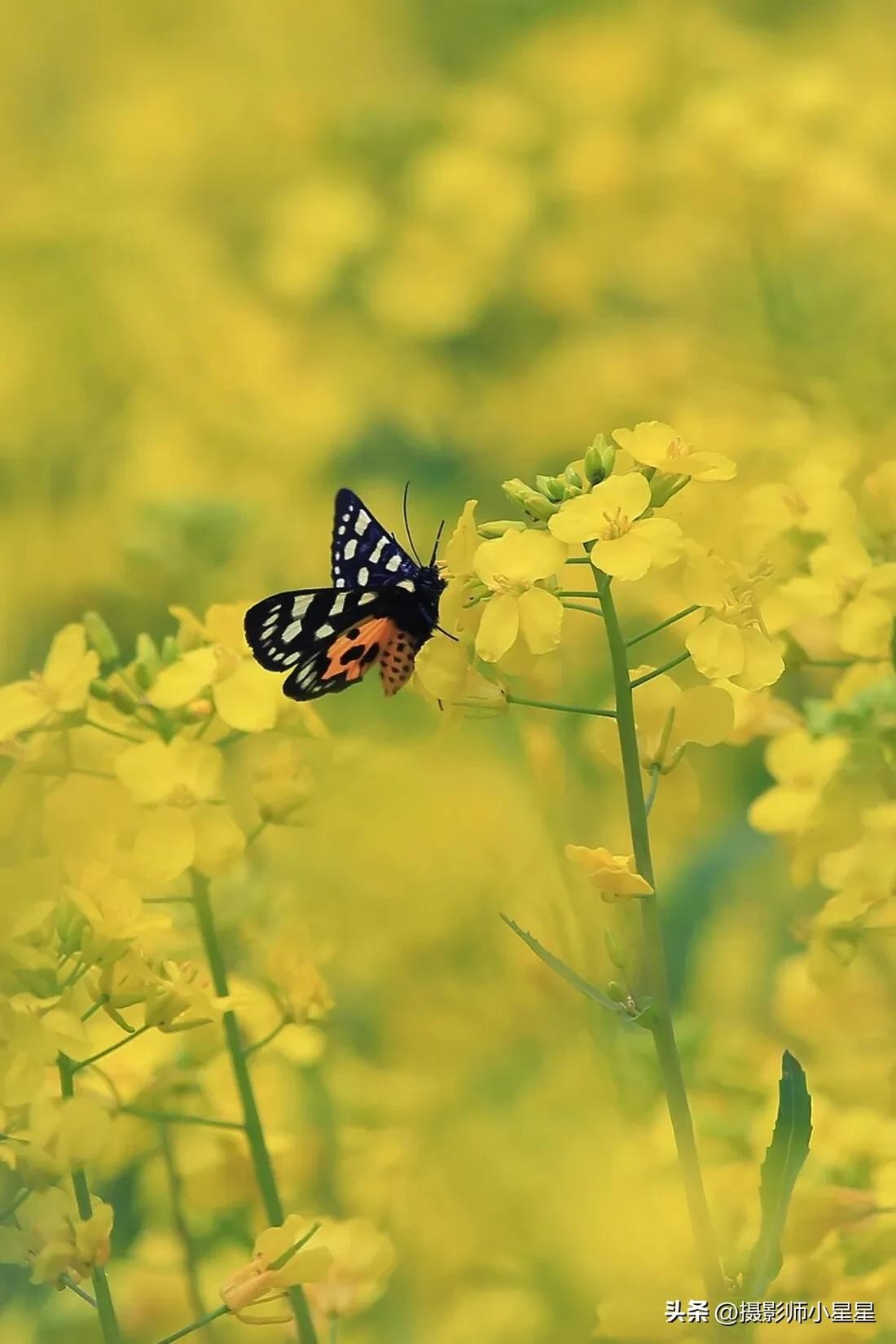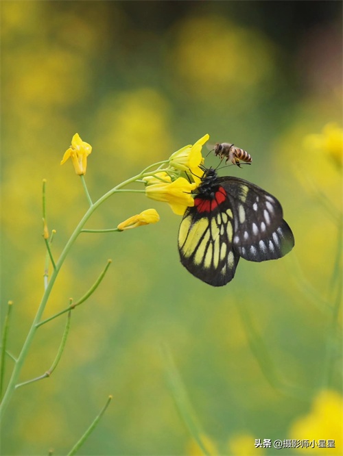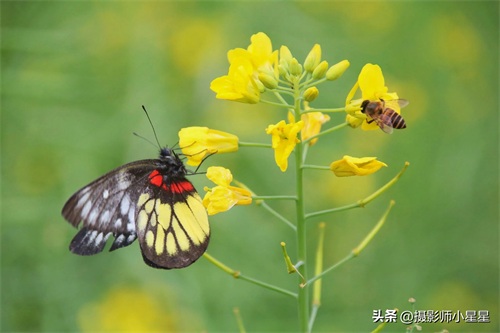 拍摄油菜花我们还可以搭配蜜蜂、蝴蝶等昆虫,能够为照片增添生动和自然的感觉。下面总结了拍摄油菜花搭配昆虫的好处: