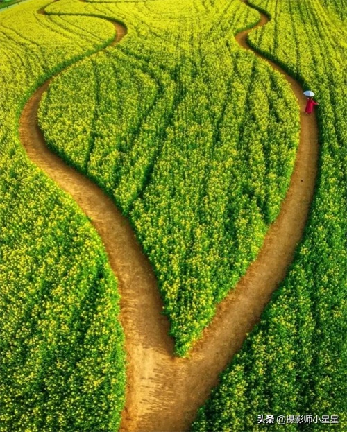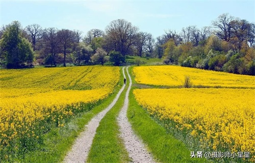 利用线条引导线可以给照片增加动感,营造一种运动的感觉。例如,通过拍摄一条弯曲的小路,可以让观众感受到在油菜花田中的漫步过程。线条在照片中的曲线和方向,可以传达出一种流动、律动的感觉,让观众产生身临其境的体验感。