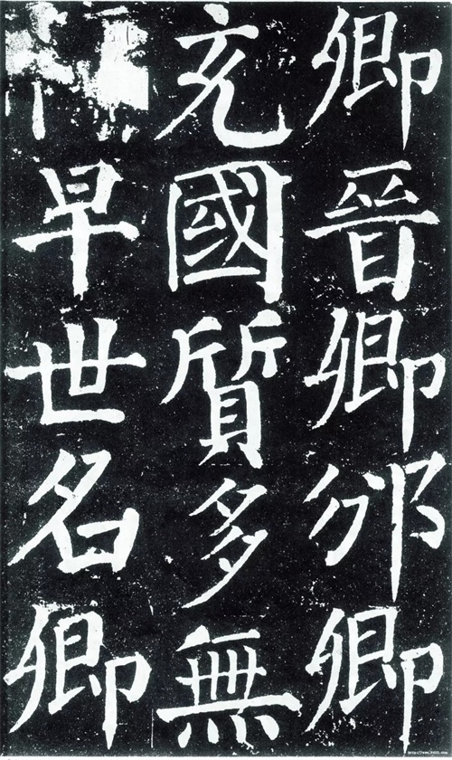《颜勤礼碑》与初唐其他碑刻相较,突出的特点是浑厚、雄强以及茂密之美。几乎每个字都撑满了局部的空间,加之外拓的结构特点,在彰显茂密的同时充满了张力。