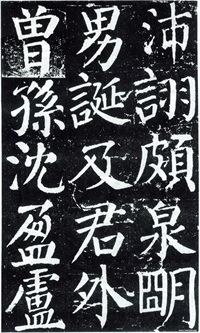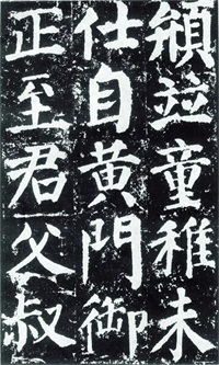《颜勤礼碑》,唐颜真卿撰文书丹,自署立于大历十四年(779年)。楷书,碑文一通。残石175×90×22厘米。碑四面环刻,存书三面。碑阳19行,碑阴20行,行38字。左侧5行,行37字。右侧上半宋人刻“忽惊列岫晓来逼,朔雪洗尽烟岚昏”十四字,下刻民国宋伯鲁题跋。现存西安碑林,北京故宫博物院藏初拓本。《颜勤礼碑》在拙重中见挺拔雄肆之气概,《麻姑仙坛记》则在宽博中见空灵洞达之韵度,堪称颜楷的双峰并峙。
