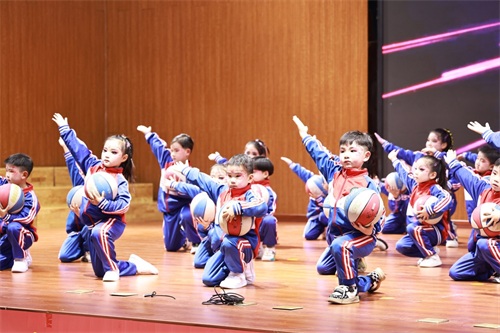 温馨的亲子舞、动感十足的器械操和篮球音乐操、活泼可爱的速叠杯和手拍鼓表演,赢得台下阵阵喝彩。多名家长也上台表演了歌曲、瑜伽等节目,活动现场充满欢声笑语。