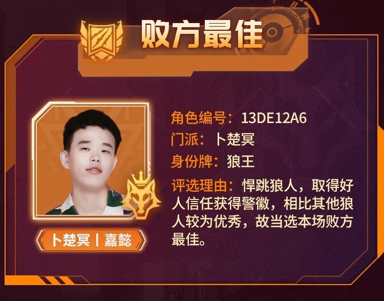 主播李锦在对局中频出“高能发言”,令人哭笑不得。主播嘉懿则手拿狼牌,选择悍跳,并凭借着优秀的发言实力拿下警徽,虽然最终伪装被识破,但他也获得了本次表演赛的败方最佳。