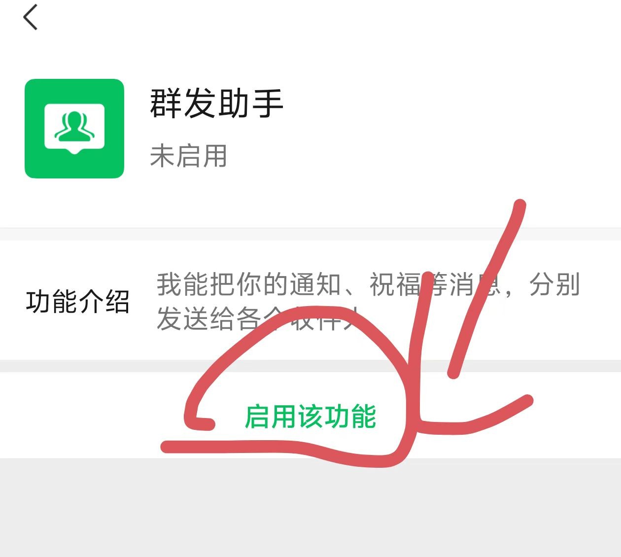 5.进入辅助功能页面后,看到页面中有“群发助手”我们点击进入并启用,开启成功之后就可以看见啦