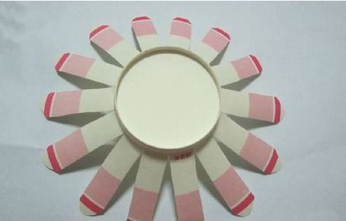 2.然后将纸杯周围划成条状,均匀地分哦!
