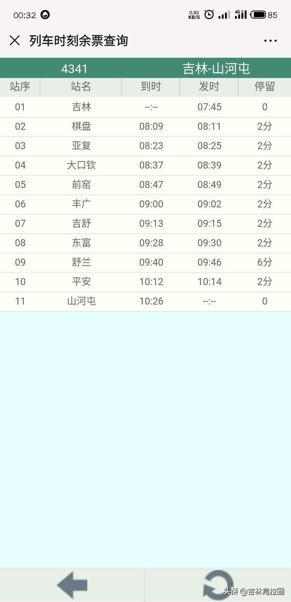 4341次 吉林至山河屯 新时刻 2020.01.10起实行