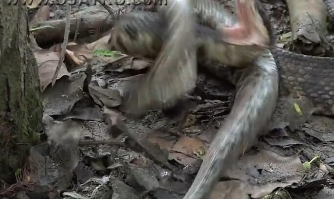 之后,一步一步地将响尾蛇活吞,这个时候响尾蛇还在游动。。。但它就是不反抗,也不挣扎了,感觉一副“我心已死”的状态
