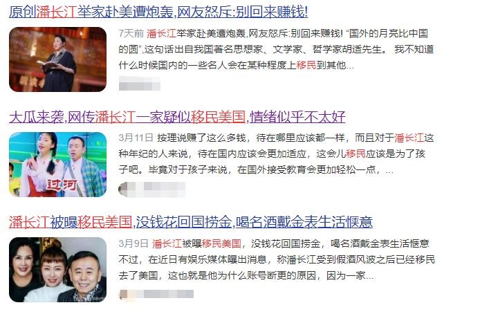 翻查资料,潘长江全家移民美国的谣言大概在本月9日传开。当时有网友在社交网上爆料,说自己在美国偶遇潘长江及其家人,并声称潘长江一家已经移民。然而,该网友压根没有提供在美国街道或某处建筑遇到潘长江一家的照片。