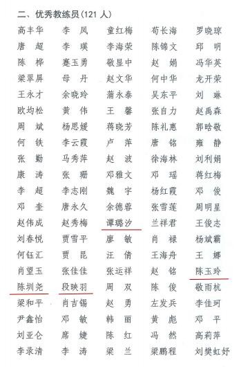 本校教师陈圳尧老师、段映羽老师、陈玉玲老师、谭璐汐老师荣获优秀教练员的称号。