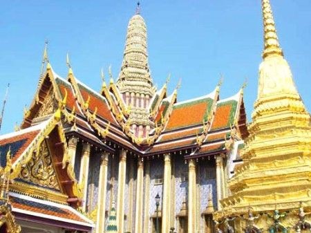 建于1784年的玉佛寺是泰国大王宫的一部分,面积约占大王宫的1/4。玉佛寺是泰国王族供奉玉佛像和举行宗教仪式的场所,因寺内供奉着玉佛而得名。寺内四周有长约一公里的壁画长廊,上面绘有178幅以印度古典文学《罗摩衍那》史诗为题材的精美彩色连环画,并附有泰文译诗。玉佛寺内的几块大瓷屏风上彩绘着中国《三国演义》的故事,精美绝伦。