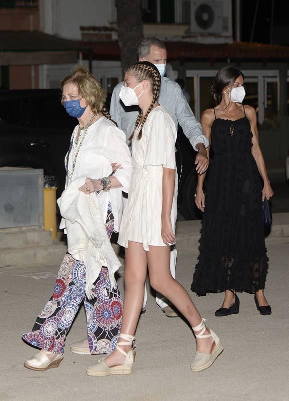 最近,西班牙王室的一家四口正在马略卡岛上度假。有媒体拍摄到,西班牙国王费利佩六世、莱蒂齐亚王后带着两个女儿,与索菲亚王太后共进晚餐。