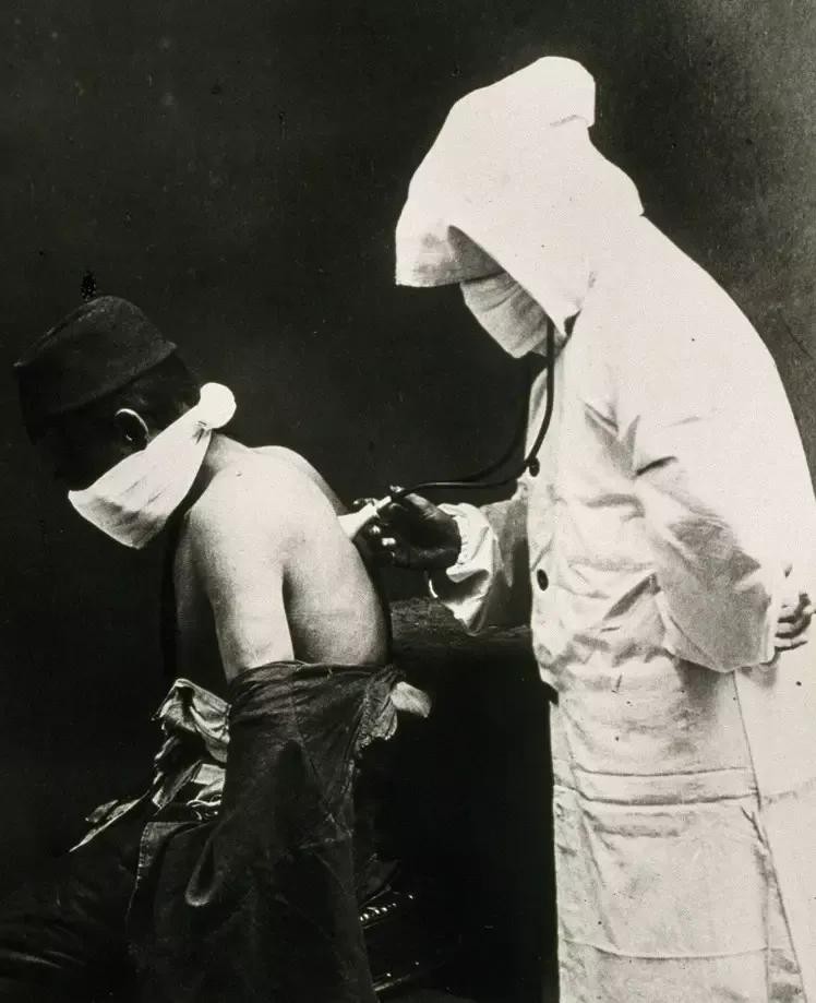 1900年,中国爆发鼠疫期间,一名医生在检查病人