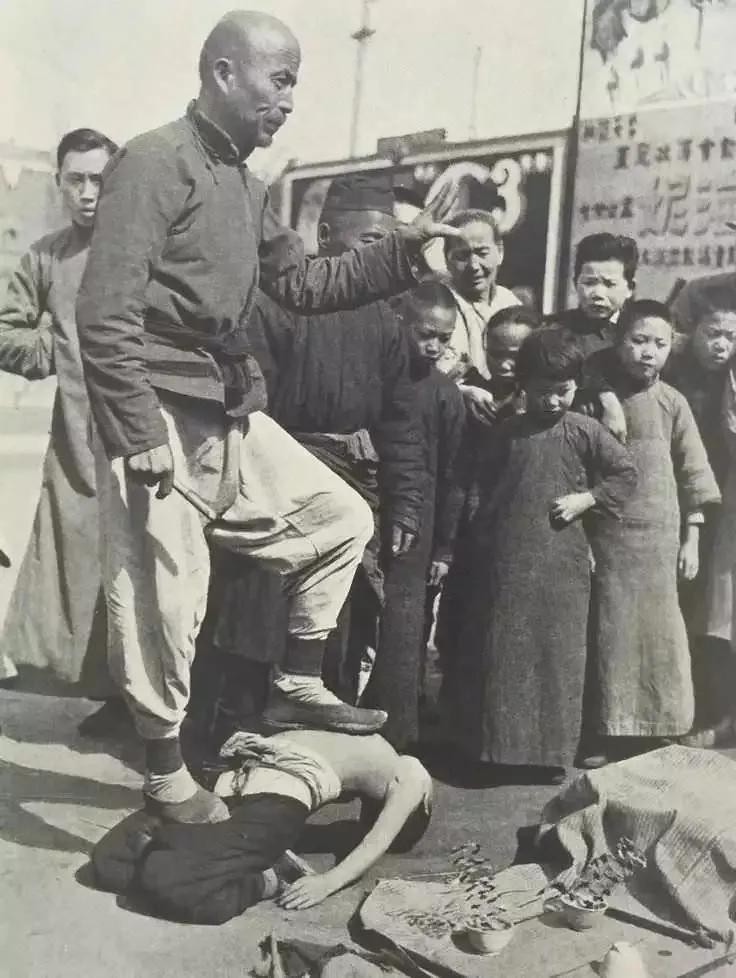 1927年在中国,几个人在表演杂技