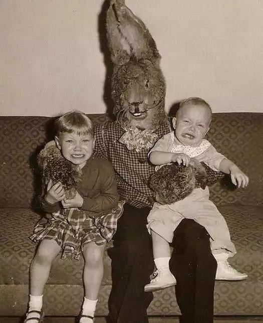 1958年在美国,复活节兔子抱着两个儿童