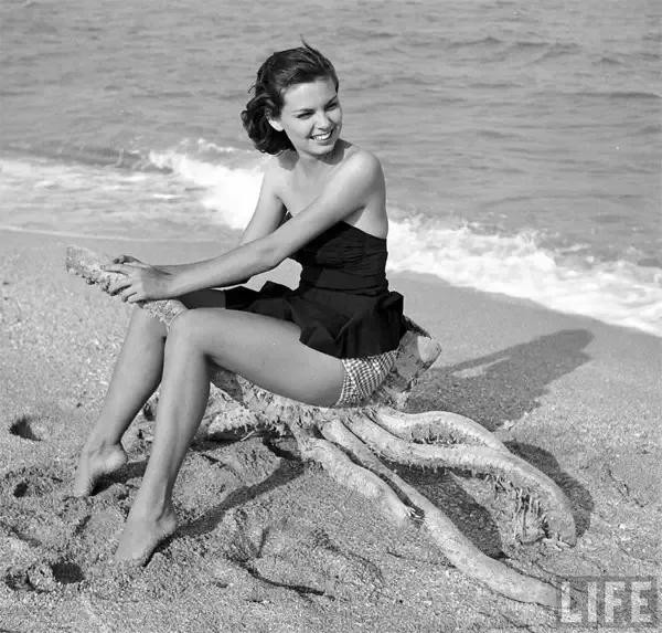 1955年在美国,一名女子骑着某种植物的模型