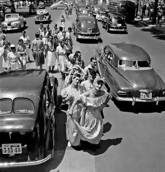 1956年在巴西里约热内卢,一群穿着女装的男子