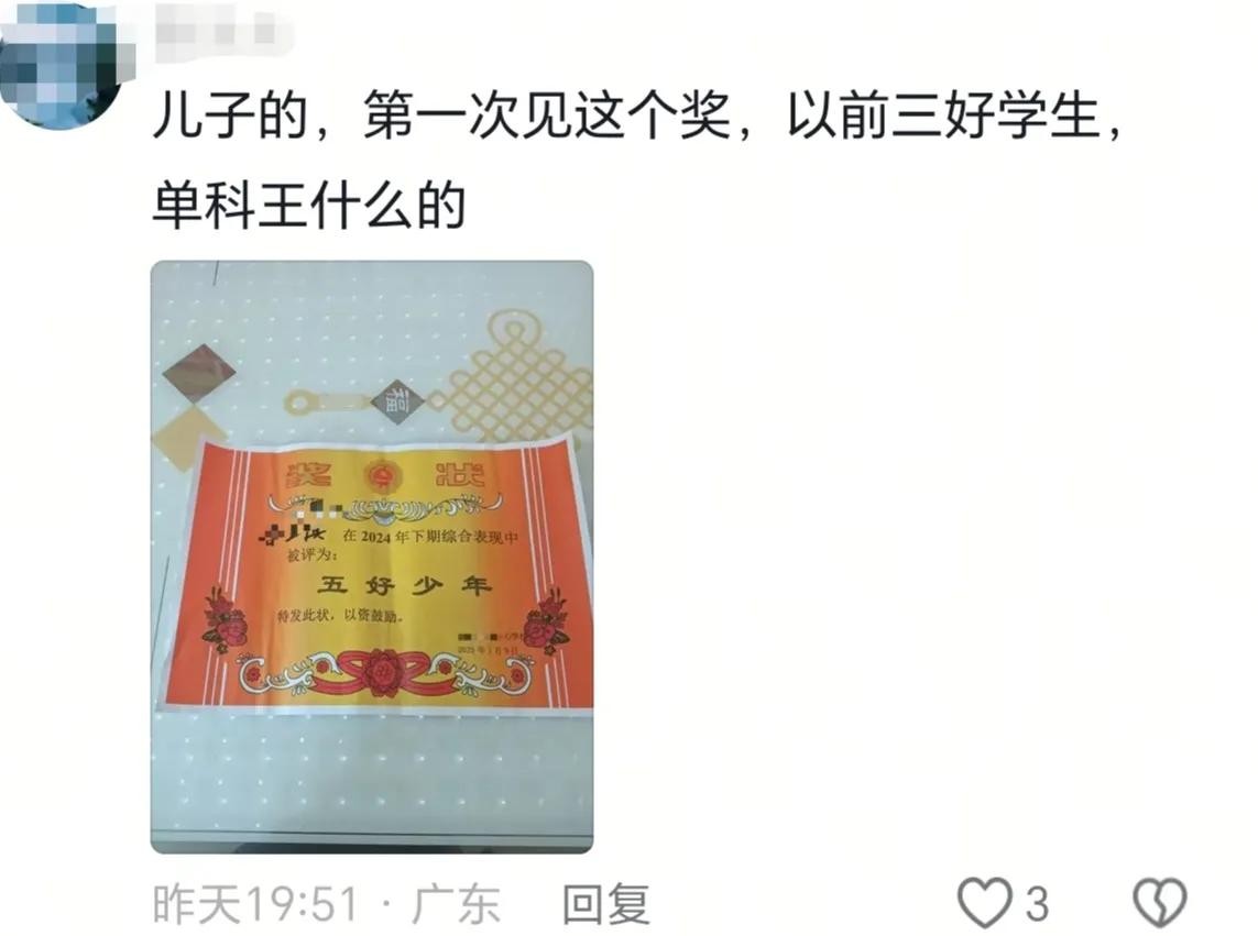安徽一家长说,他们那边最好的就是“三好学生”,其次才是“学习标兵”“优秀学生”“进步之星“之类的。