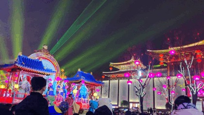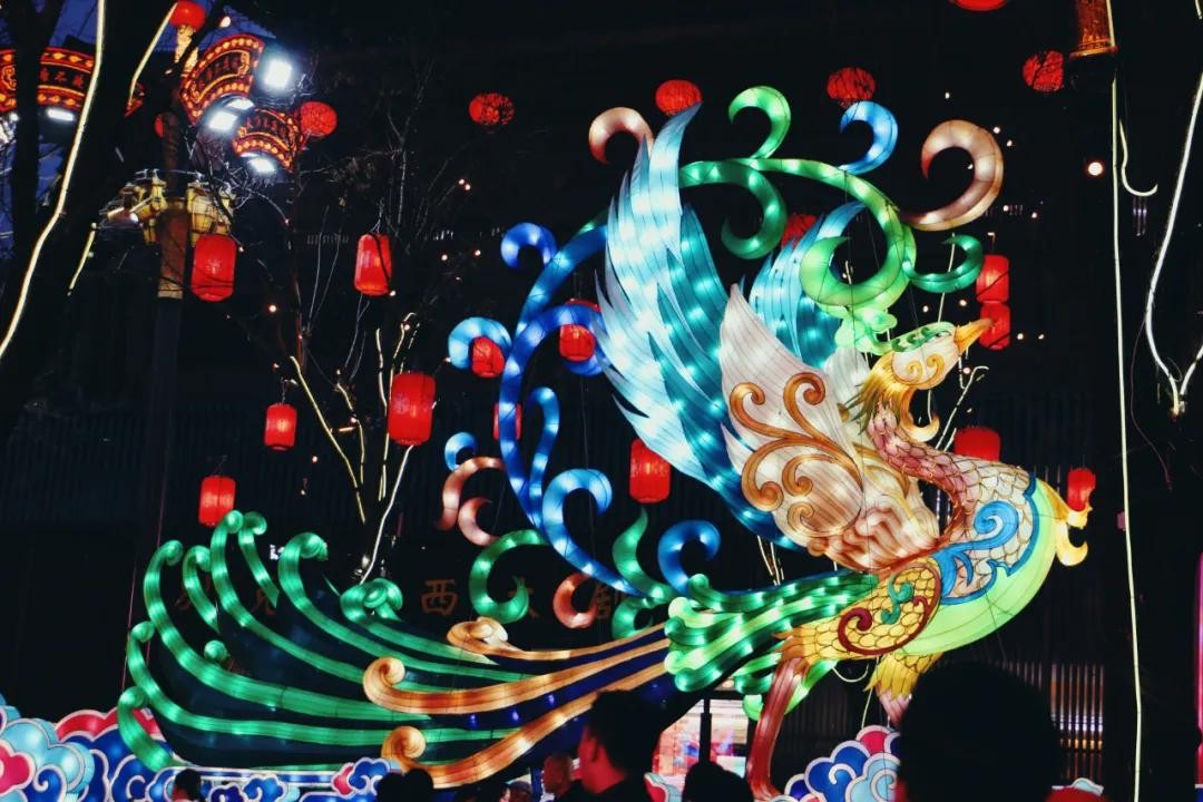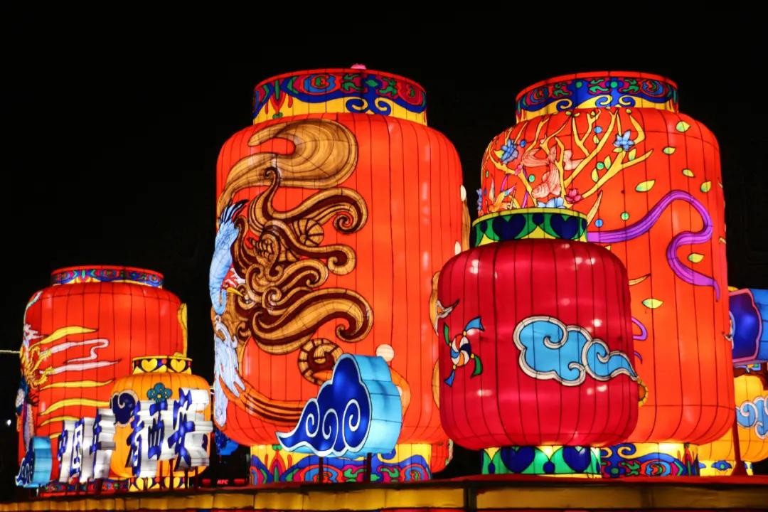 牡丹花海、巨兽门神,几处大灯雕在长街之中格外显眼。