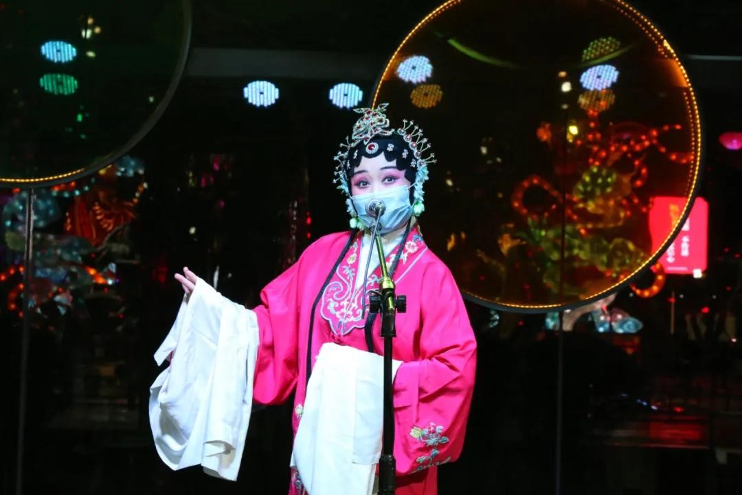 台上的演出没有因为疫情打折扣,只是台下的演员们画着浓妆也会带上口罩等候上场。