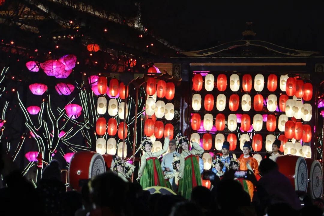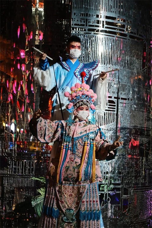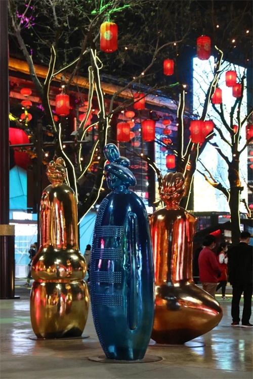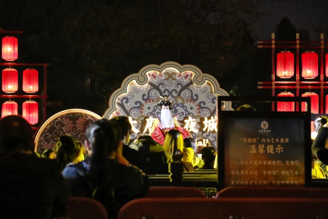 仙女姐姐们身形婀娜、犹抱琵琶,在灯火之中显得更加夺目。这场比不倒翁更加精美费心的行为艺术,绝对值得打卡围观。