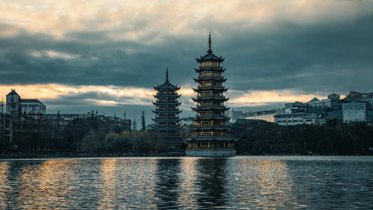 此外,日月双塔还是桂林的风水宝地,是中国著名的风水建筑。从大门方向来看,日月双塔组成了一个“易”字,是一个典型的风水建筑群。
