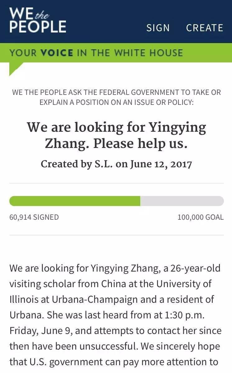 ▌6月15日, UIUC师生、章莹颖家人发布“全美搜寻章莹颖倡议书”