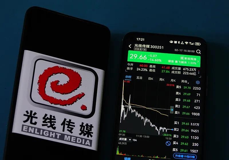2月17日,光线传媒盘初触及涨停后急转直下,吓了投资者一跳。截至当天收盘,光线传媒股价大跌14.6%至29.66元/股,市值跌至870.11亿元。与上一个交易日相比,市值蒸发了148.73亿元。2月18日上午,光线传媒股价仍在回调。