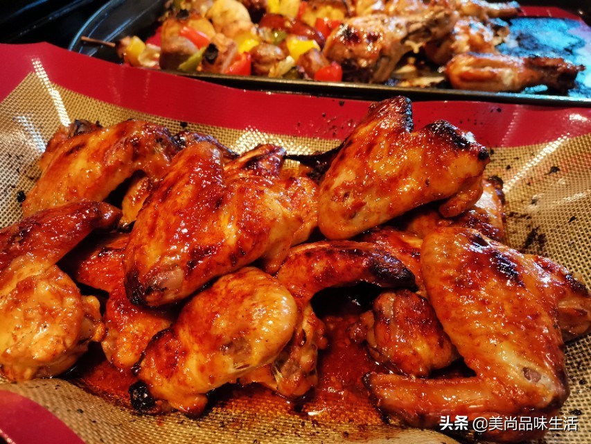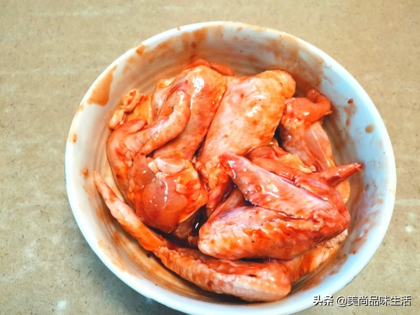 1、鸡翅洗净后,控干水分,提前8个小时用蜜汁烧烤酱腌渍入味。