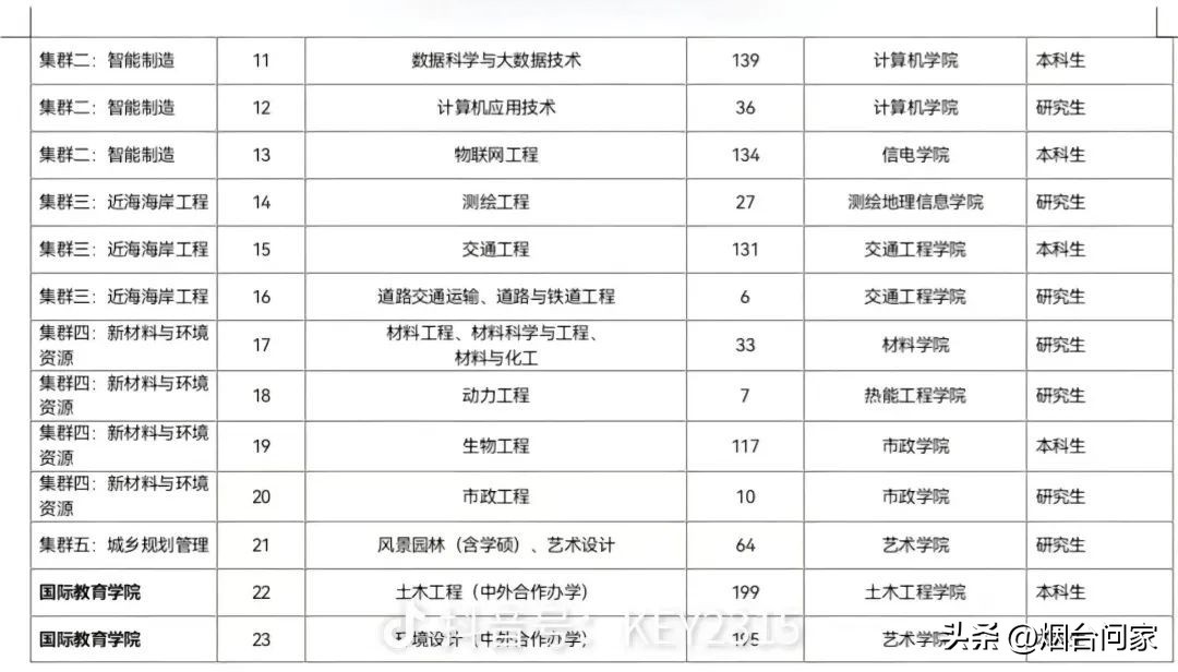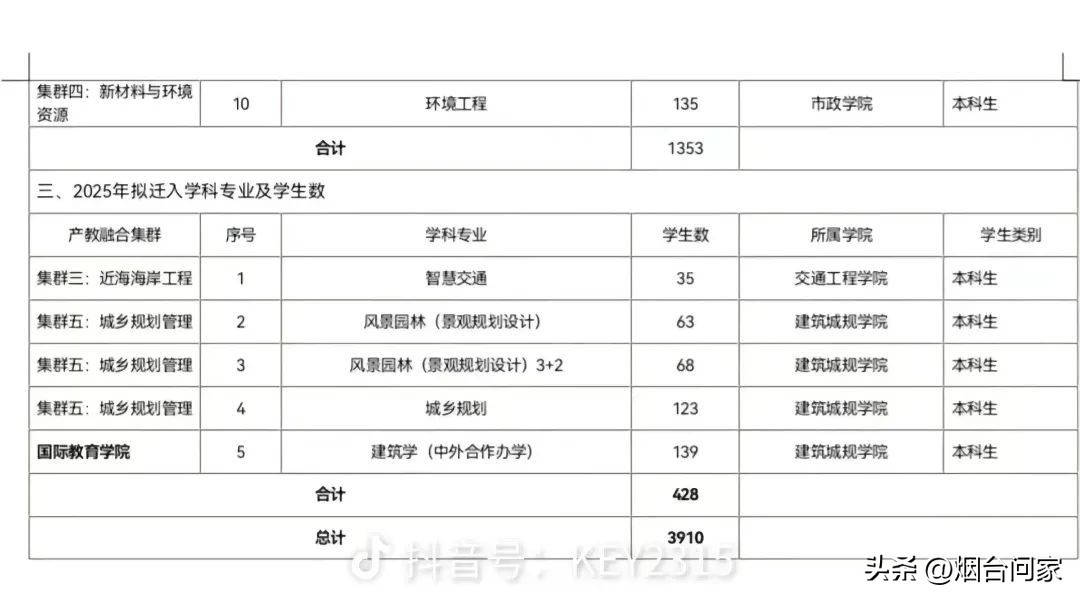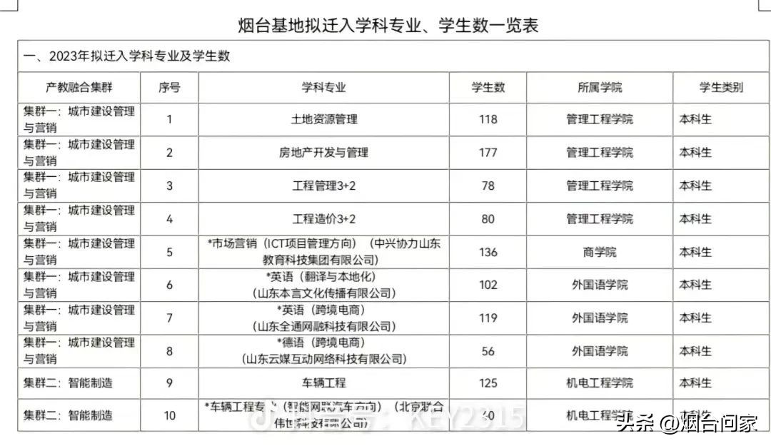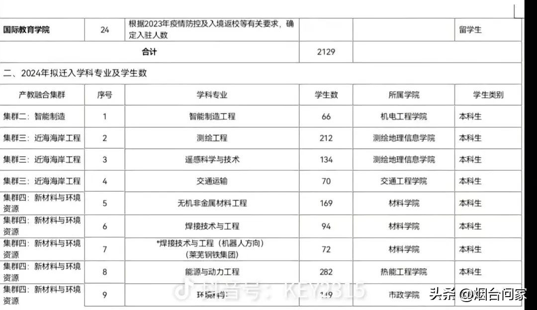 有网友也发布,烟台基地拟迁入学科专业、学生数一览表。