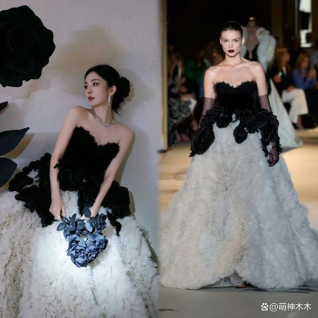 作为 85 花女星中的流量代表,杨幂这次算是盛装出席活动,一共准备了两套当季高定。其中红毯礼服更为抢镜,这身黑白撞色的蓬蓬裙礼服,造型简洁又不失华丽感,尤其是礼服采用拼接层叠纱的设计,增添了几分华贵质感。这样的一身礼服来自顶级高定品牌的当季高定礼服,该品牌也是圈内一线女星的红毯首选。